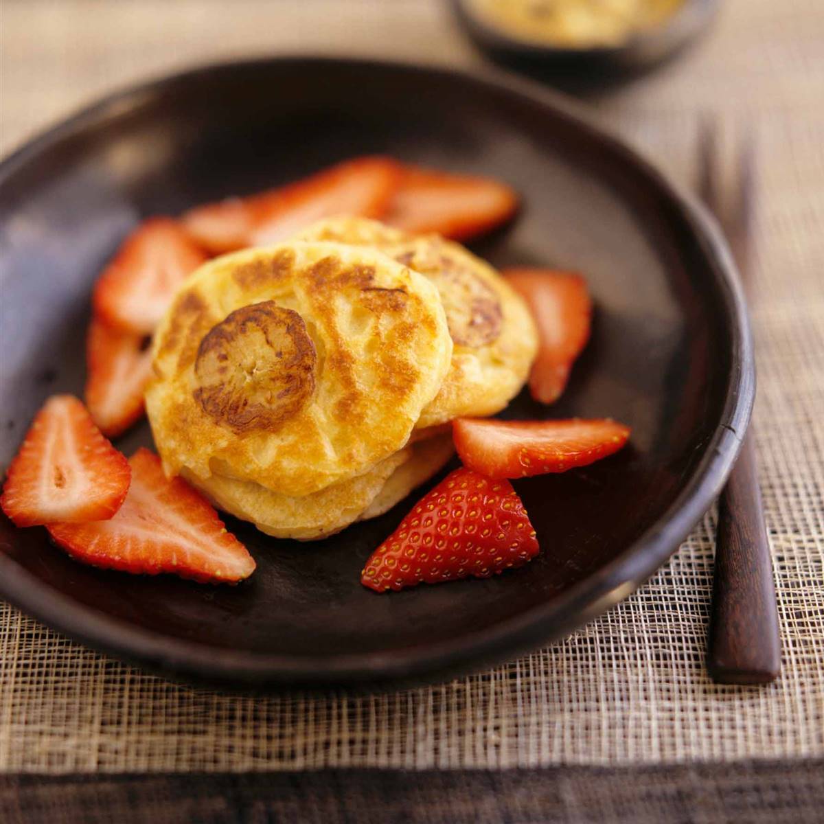 4. Serve the crepes with strawberries, cut in half.